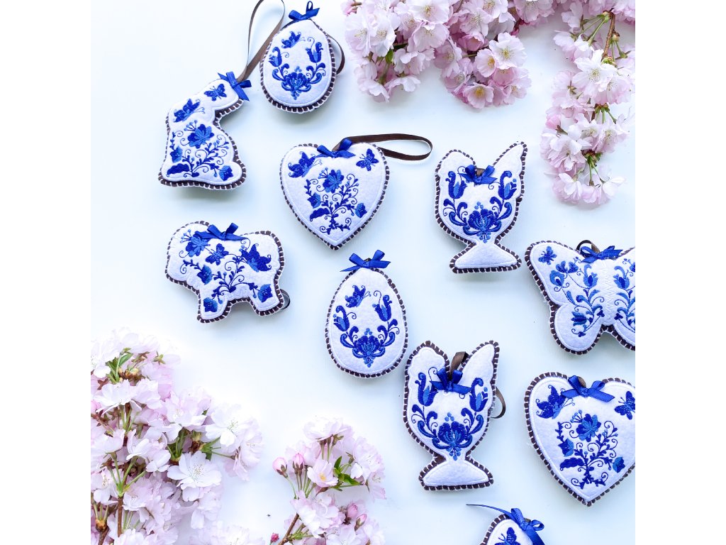 Vyšívané velikonoční perníčky -modrobílé